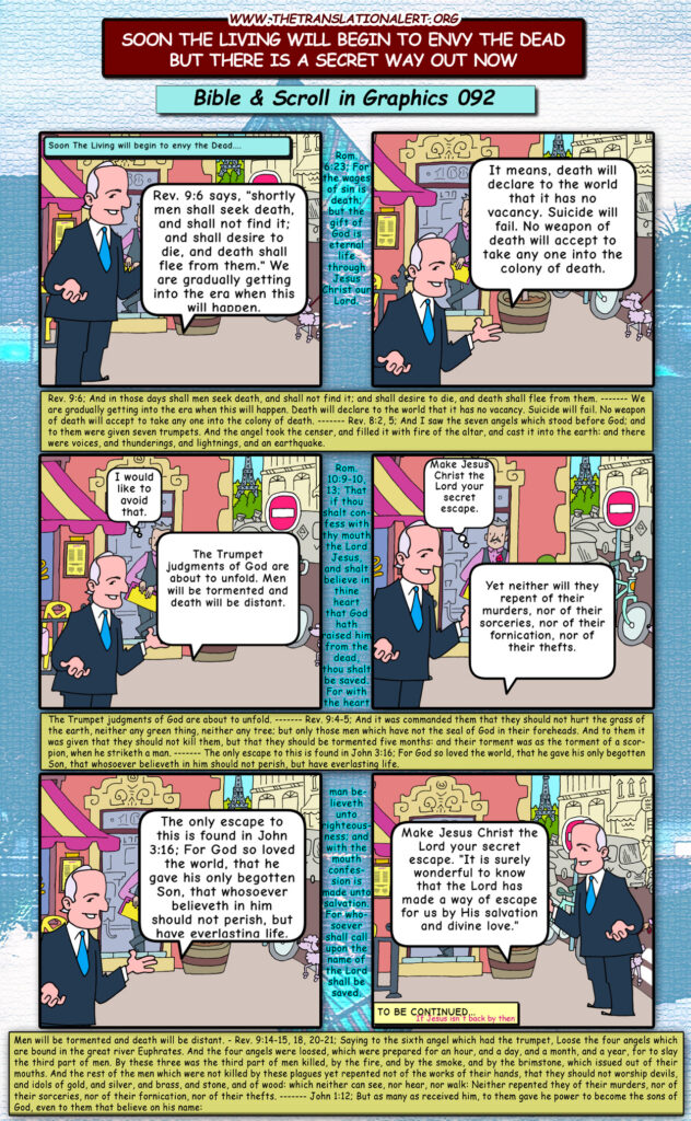 We are gradually getting into the era when this will happen. Death will declare to the world that it has no vacancy. Suicide will fail. No weapon of death will accept to take any one into the colony of death.